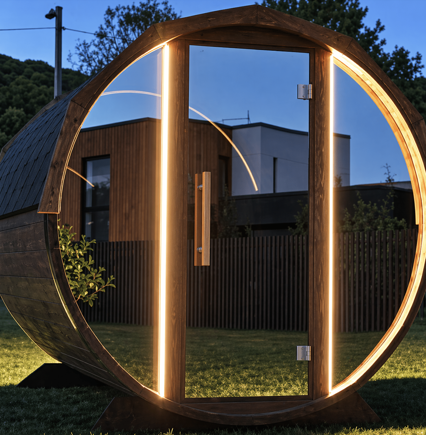 This stunning and stylish sauna is designed to elevate your relaxation experience. With its unique feature of a mirrored wall, it not only adds a touch of elegance but also creates an illusion of expanded space. The sleek and minimalist design seamlessly blends with any exterior, making it a perfect fit for any setting. Step into the world of ultimate luxury and immerse yourself in the beauty and tranquility of our Mirrored Sauna.