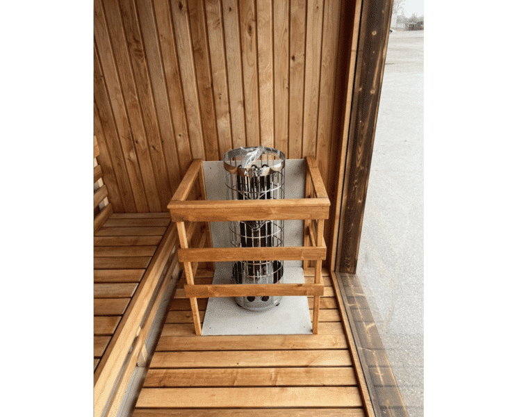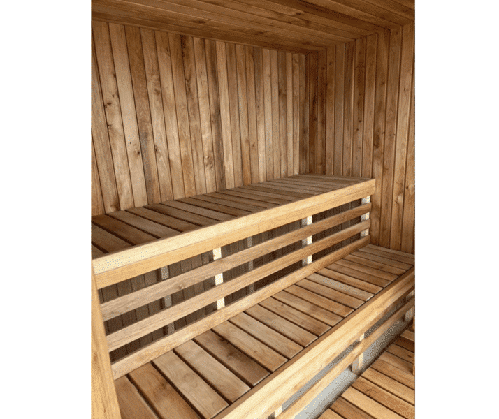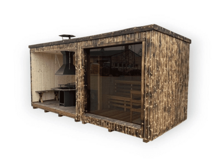 Length: 5,5 m, (2,5 m sauna + 3 m open grill);