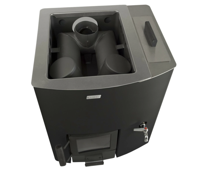 The new firebox design is based on environmental friendliness and ensuring the stove meets upcoming mandatory CE requirements. The stove’s large amount of stones and sturdy construction ensure even and soft steam. Despite its robustness, the stove heats up with just a small amount of wood.