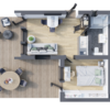 - Kitchen furniture – integrated ceramic stove, sink, and refrigerator