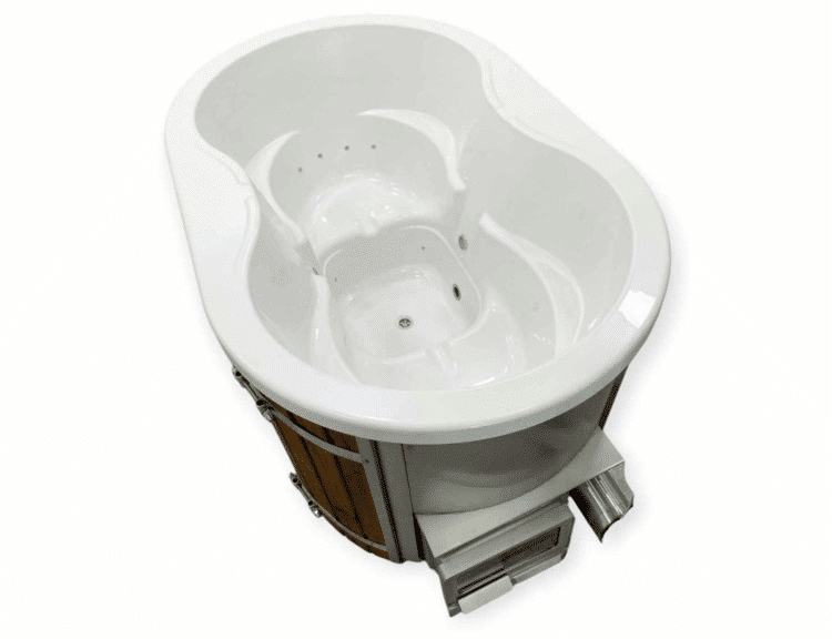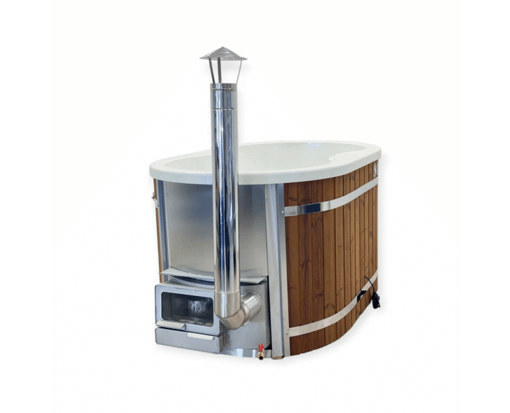 An ofuro with an integrated heater and acrylic insert is a special kind of ofuro that has a built-in device that heats the water with wood. The integrated heater make the water hot quickly, efficiently and can be adjust by changing the amount of wood and air. Acrylic insert is a material that covers the inside of the ofuro, making it more durable and easy to clean. Is protect the wood from getting damage by moisture and temperature changes.
