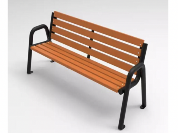 The strong wooden parts of the bench are attached to the galvanized steel structure, which has been treated with powder paint.