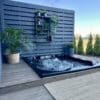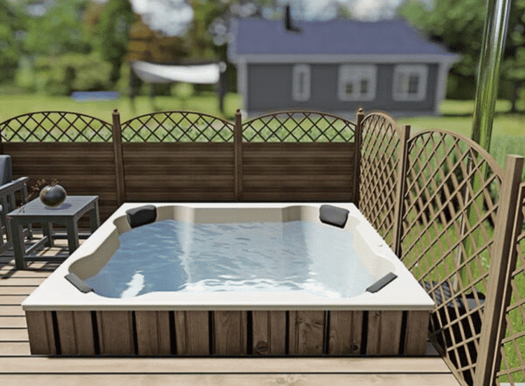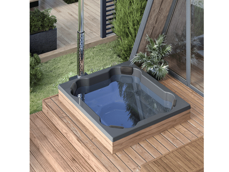 The most spacious and largest square hot tub built in for the terrace. It has a relatively small volume (1400 l) of a barrel, which allows you to use water and firewood rationally. Thanks to its unique patented shape of seats, 4 integrated headrests and a step (or baby seat), this model of fiberglass in deck hot tub is one of the most convenient and comfortable. This option of Hot tub for deck can accommodate up to 10 people, which is suitable for a large family or party fans. Adding various useful accessories, you will get an individual hot tub with whirlpool effect.