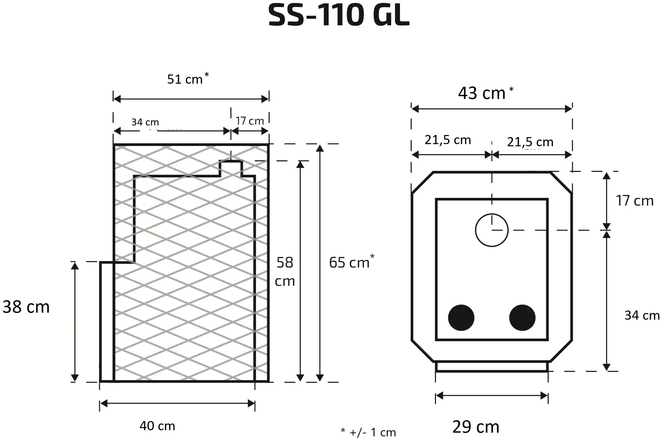 This model is heated directly from the same room and features a durable glass door, top flue connection, and a compact body ideal for limited spaces. Built with heat-resistant materials and efficient airflow design, the SS-110 GL ensures fast heating and a long service life while maintaining energy efficiency and safety.