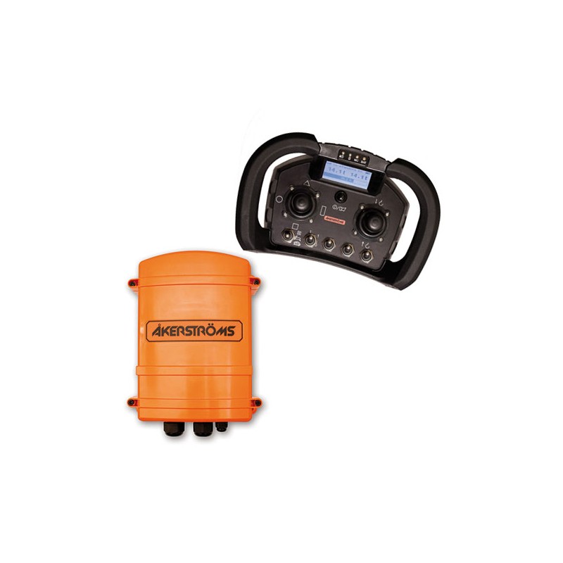 Remotus Era 150 is a joystick or paddle transmitter for cranes and hoisting applications. The Era 150 is easy to use and has a well-thought-out, rugged design. It has rubberized handles for a good grip and also stands firmly on its protective metal feet when not in use. Remotus Era 150 can handle three motions at two speeds along with five extra functions and communicates at the 434-434 MHz band.