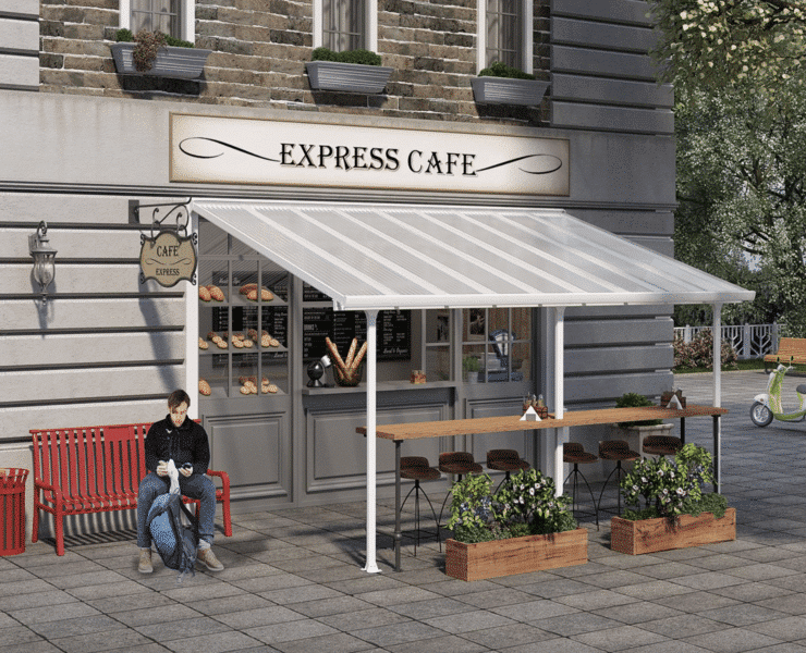 Relax and enjoy the outdoors under the Palram FERIA terrace canopy. The virtually unbreakable 8 mm polycarbonate roof panels are 100% UV-protected and block harmful UV radiation. The patented screwless roof assembly system is specifically designed to prevent rain/dew leaks. The terrace roof is designed to be easily assembled by two people using the Click N’ Lock roof system for safe and easy assembly, preventing leaks.