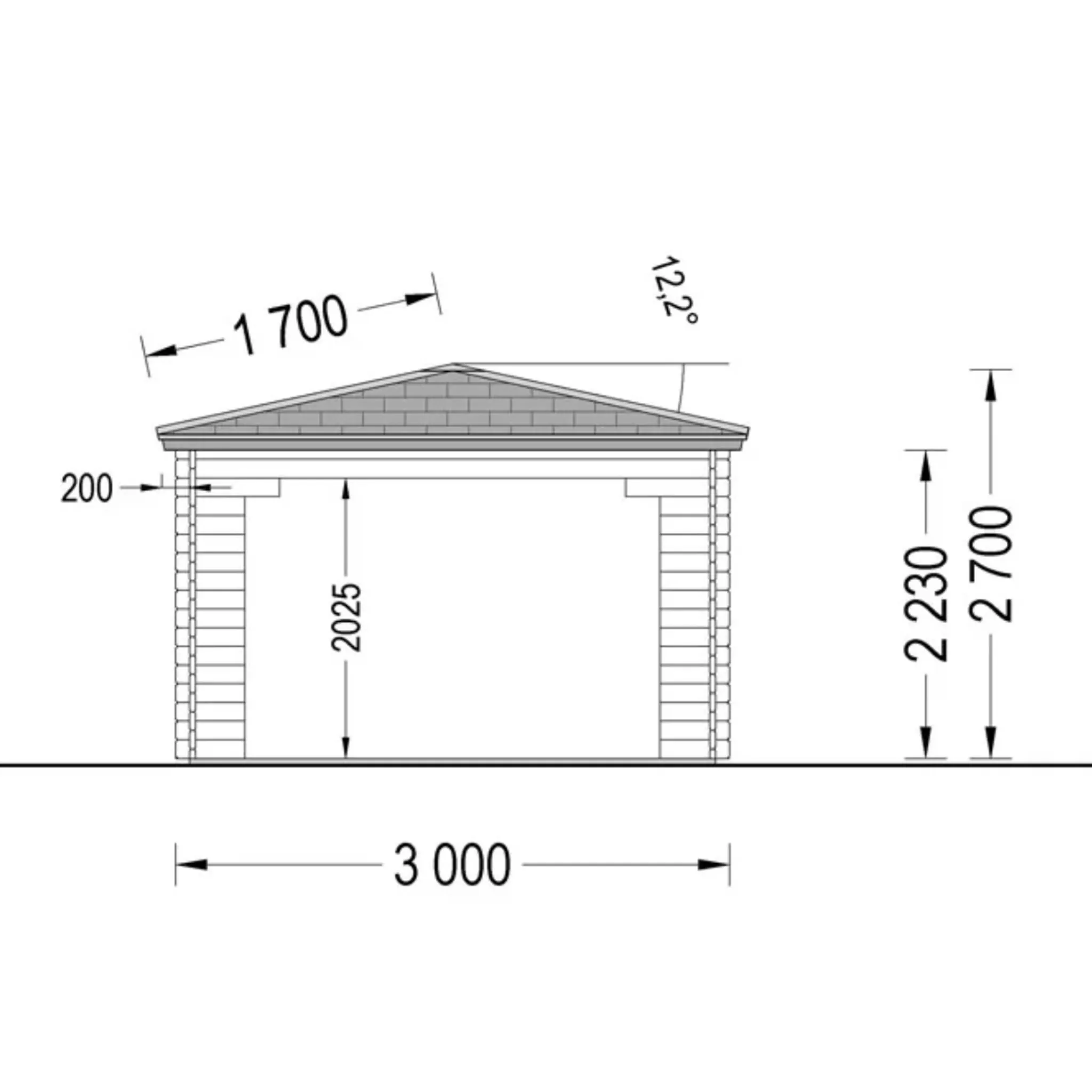 Elegant 3×3 m wooden canopie with 44 mm walls. Made from certified pine or spruce, featuring a durable tongue-and-groove roof and floor, spacious interior, and optional bitumen shingles. A perfect garden retreat for shade, gatherings, and year-round use.