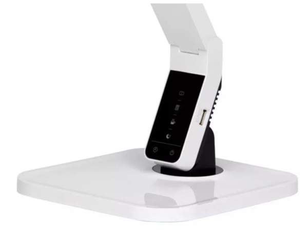In this workplace lamp, you can easily adjust all functions from the touch screen according to your needs to five different light outputs and four different light temperatures. In this way, suitable and pleasant lighting is always obtained. This versatile workplace lamp is suitable as a light source for every office. LED technology saves electricity consumption. Color-free lighting and integrated glare protection significantly reduce eye strain. The lamp also has a USB plug for e.g. phone charging.