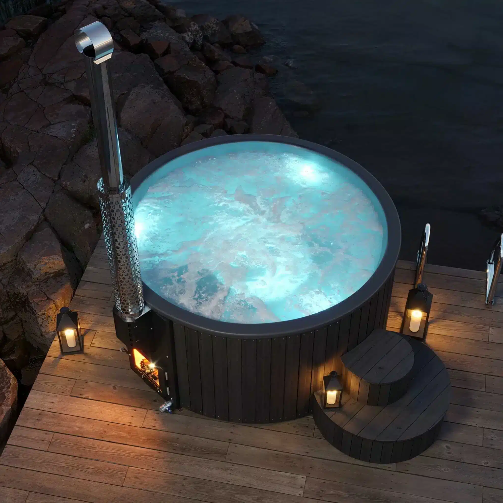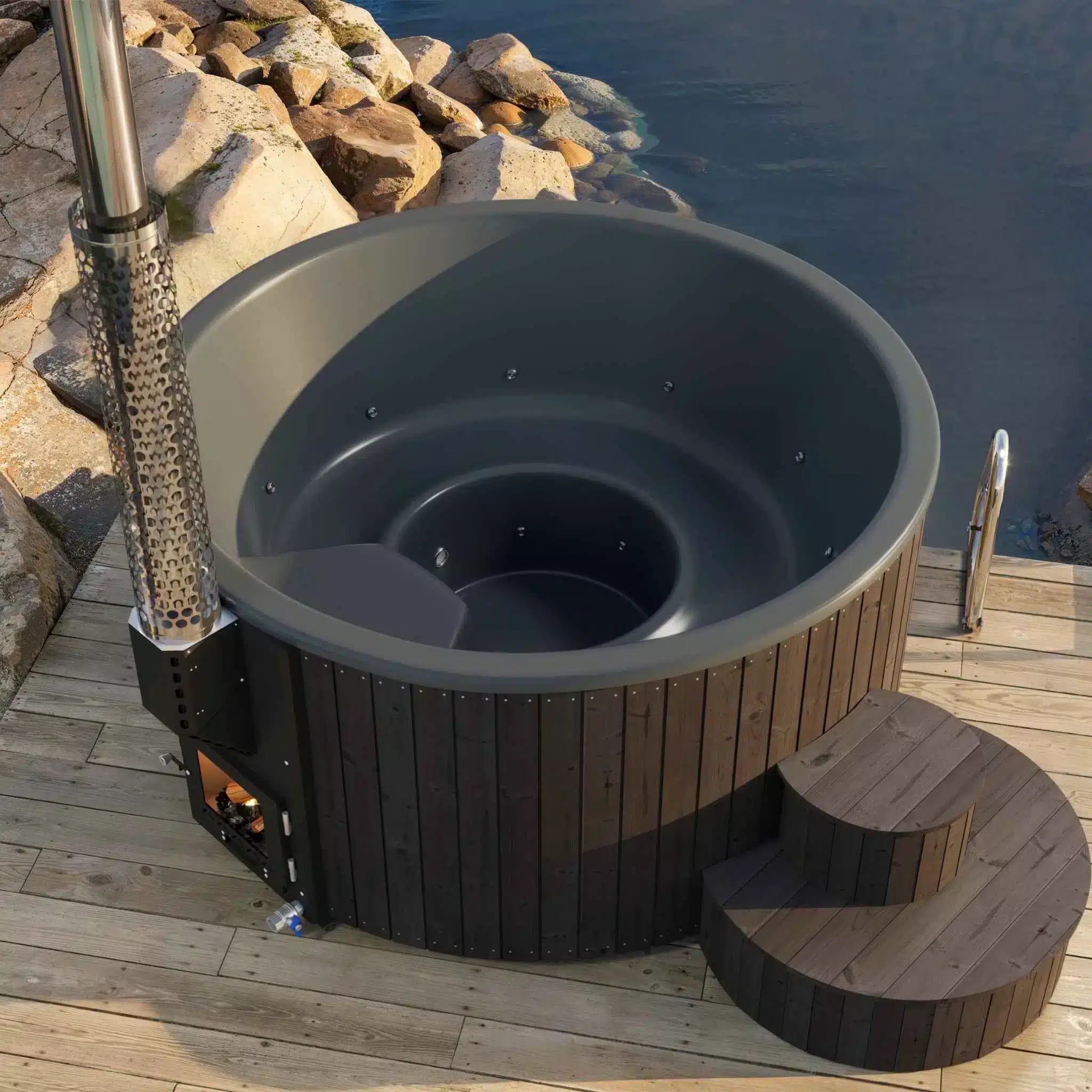 The fiberglass interior cast with a thick gel layer makes the tub extremely strong, weather-resistant, and suitable for year-round use.